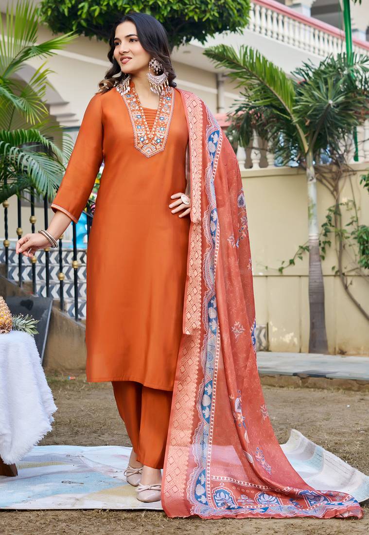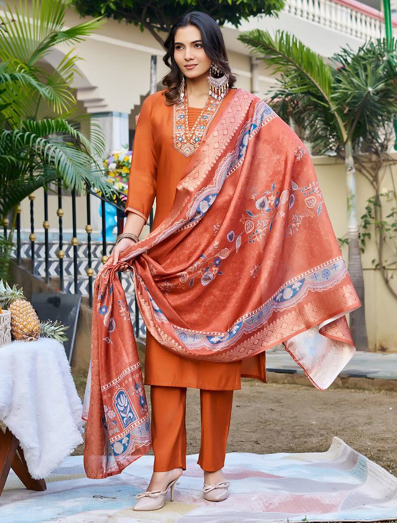 | Product Name | Women Floral Embroidered Empire Thread Work Roman Slik Kurta Pant With Dupatta | |