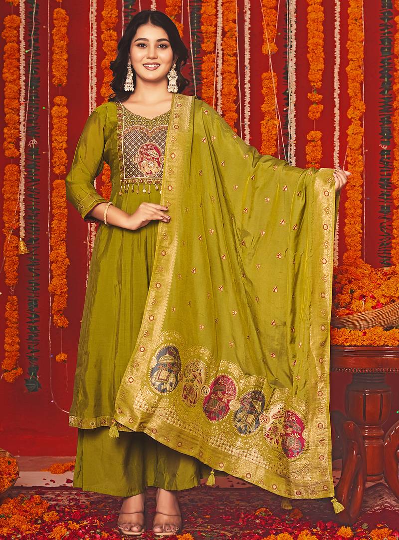 | • | Dupatta | : | Color- Green / Fabric- Raw Silk |