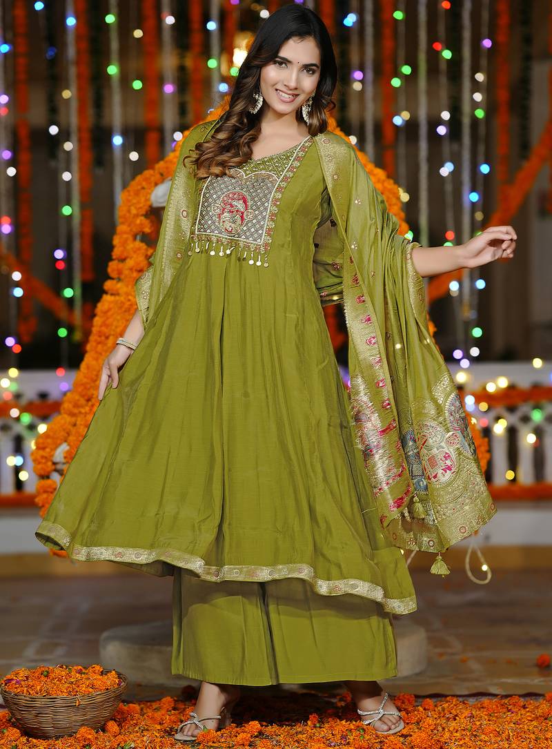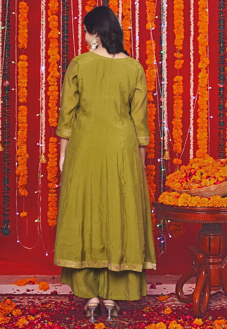 | • | Bottom | : | Color- Green / Fabric- Chanderi Silk |