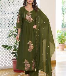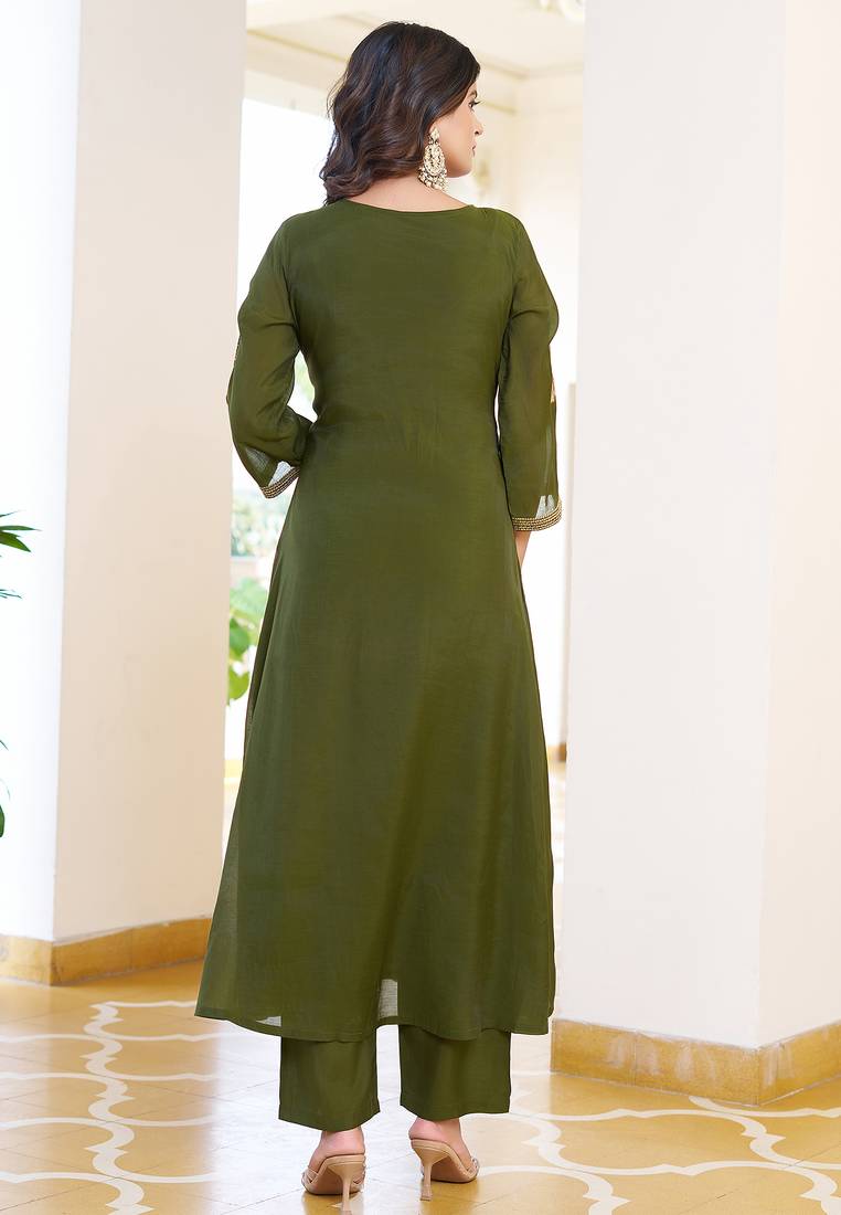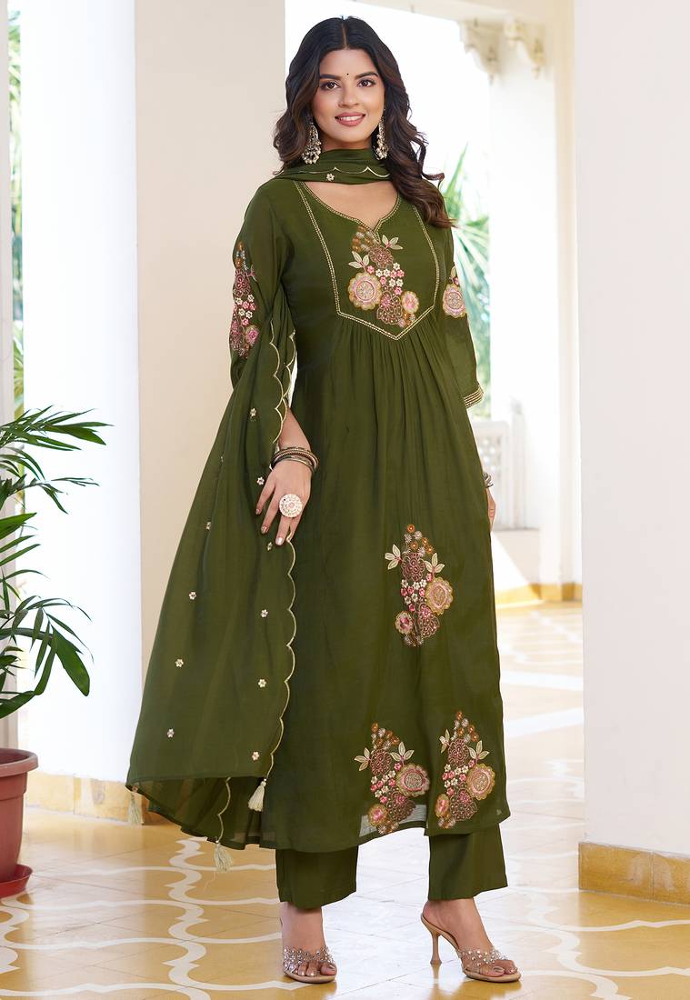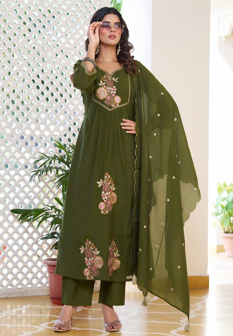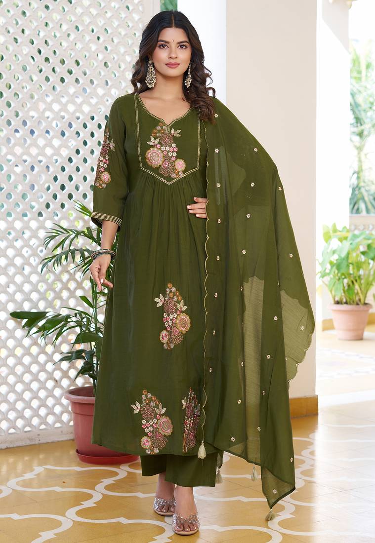Women mul chanderi with thread work & khatli work kurta with trouser & with dupatta