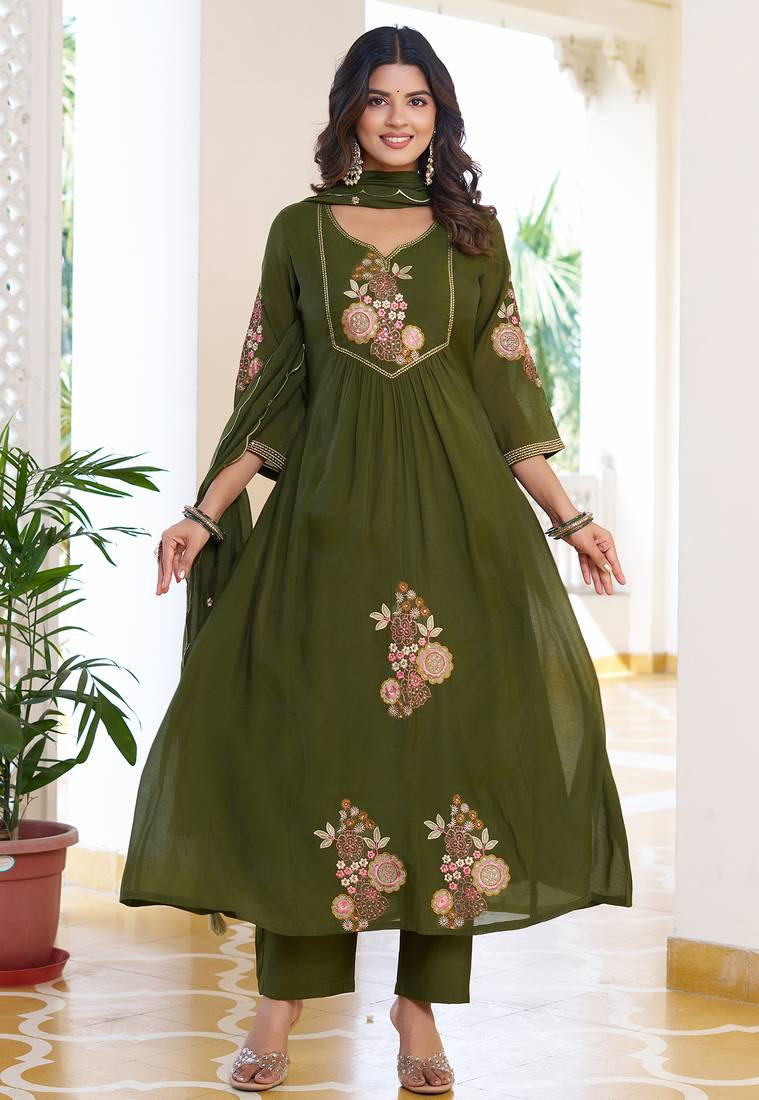 | Product Name | Women Mul Chanderi With Thread Work & Khatli Work Kurta With Trouser & With Dupatta | |