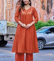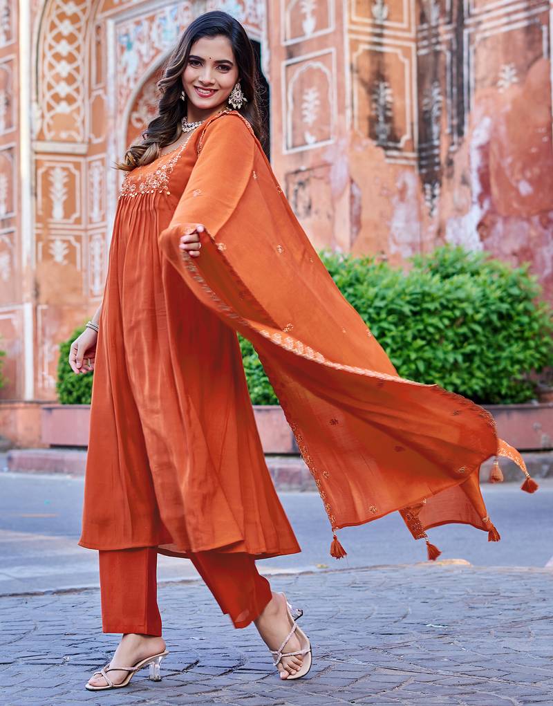 Women mul chanderi with thread work & khatli work kurta with trouser & with dupatta