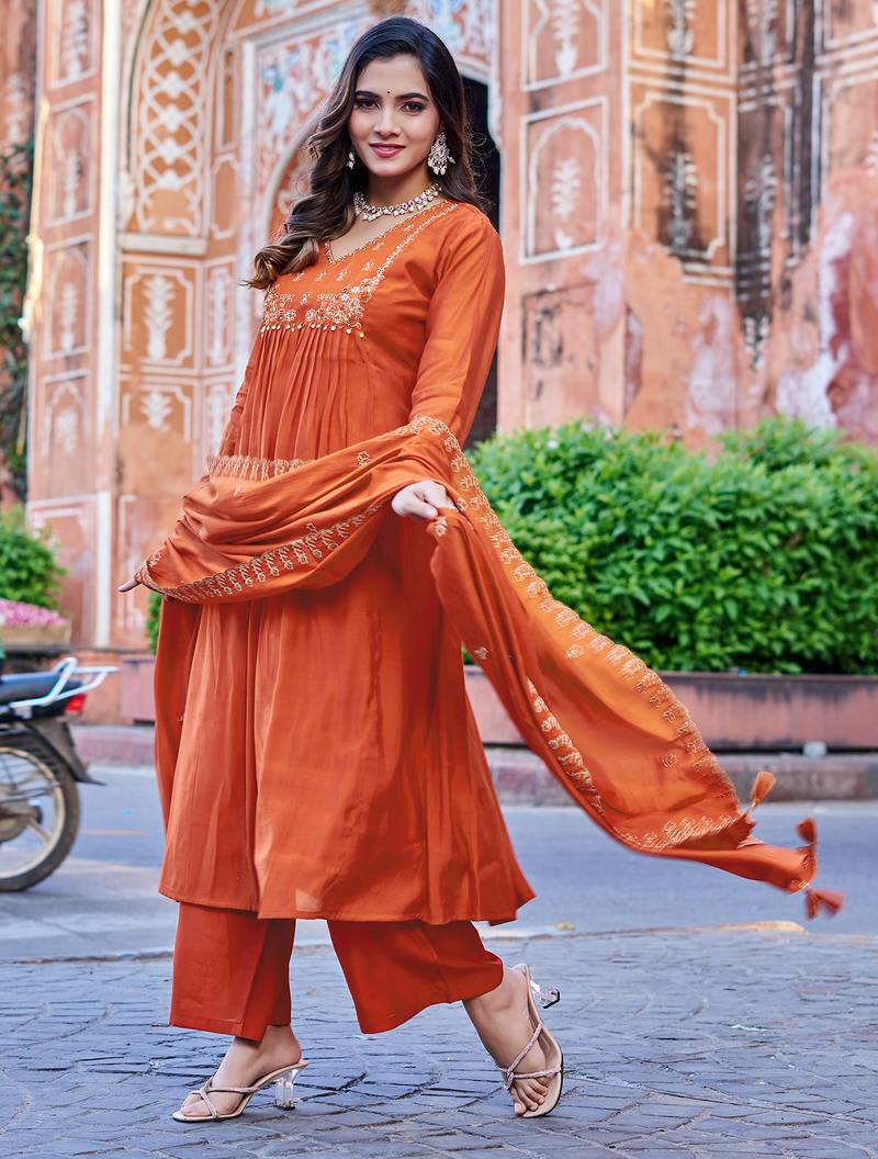 | Product Name | Women Mul Chanderi With Thread Work & Khatli Work Kurta With Trouser & With Dupatta | |
