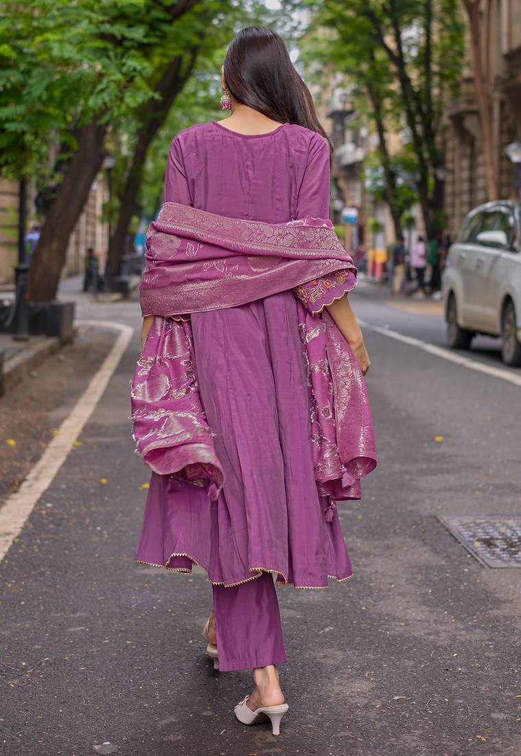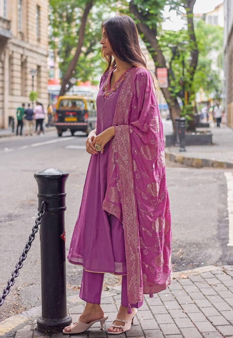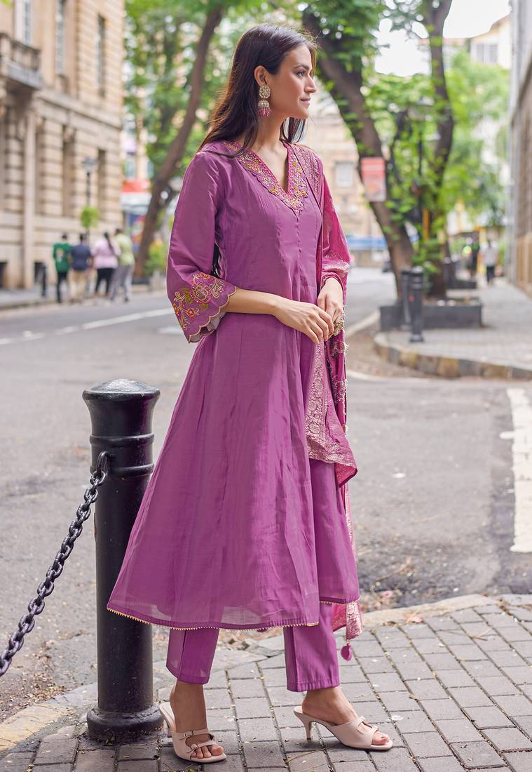 Women mull chanderi embroidered regular kurta with trousers & with dupatta
