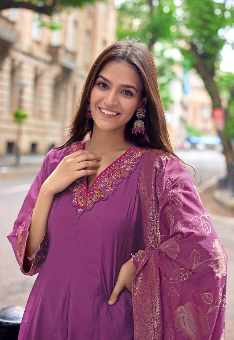Product Name | Women Mull Chanderi Embroidered Regular Kurta With Trousers & With Dupatta | |