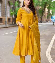 Women mull chanderi embroidered regular kurta with trousers & with dupatta