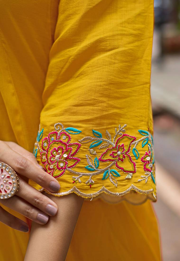 Product Name | Women Mull Chanderi Embroidered Regular Kurta With Trousers & With Dupatta | |