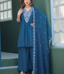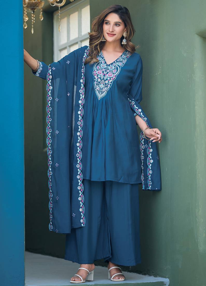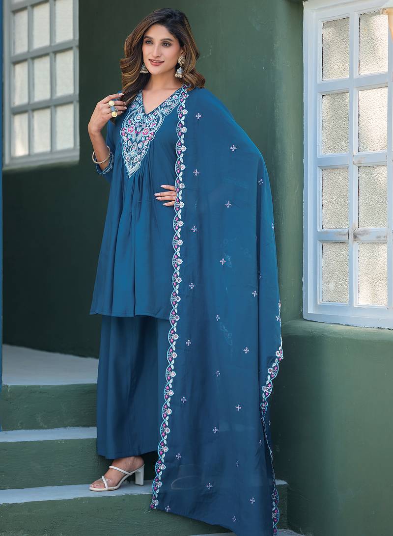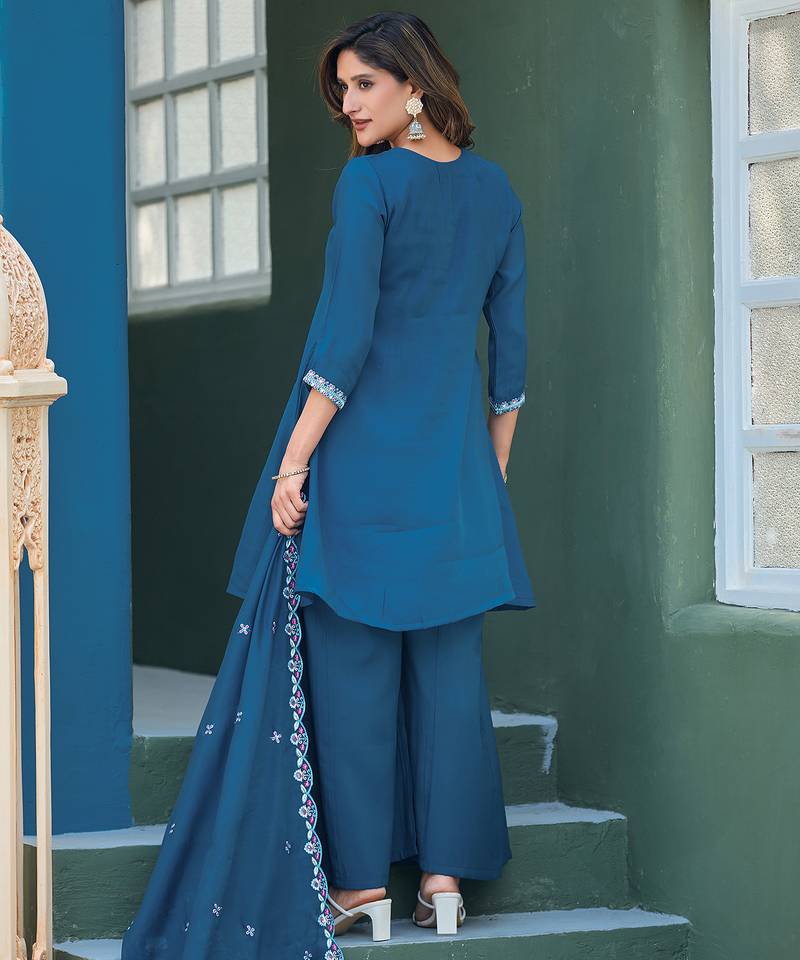 | Product Name | Women Soft Mull Chanderi Silk And Thread Works Kurta With Trousers & Dupatta | |