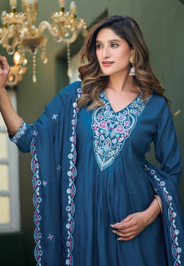 | • | Dupatta | : | Color- Teal / Fabric- Silk Blend |