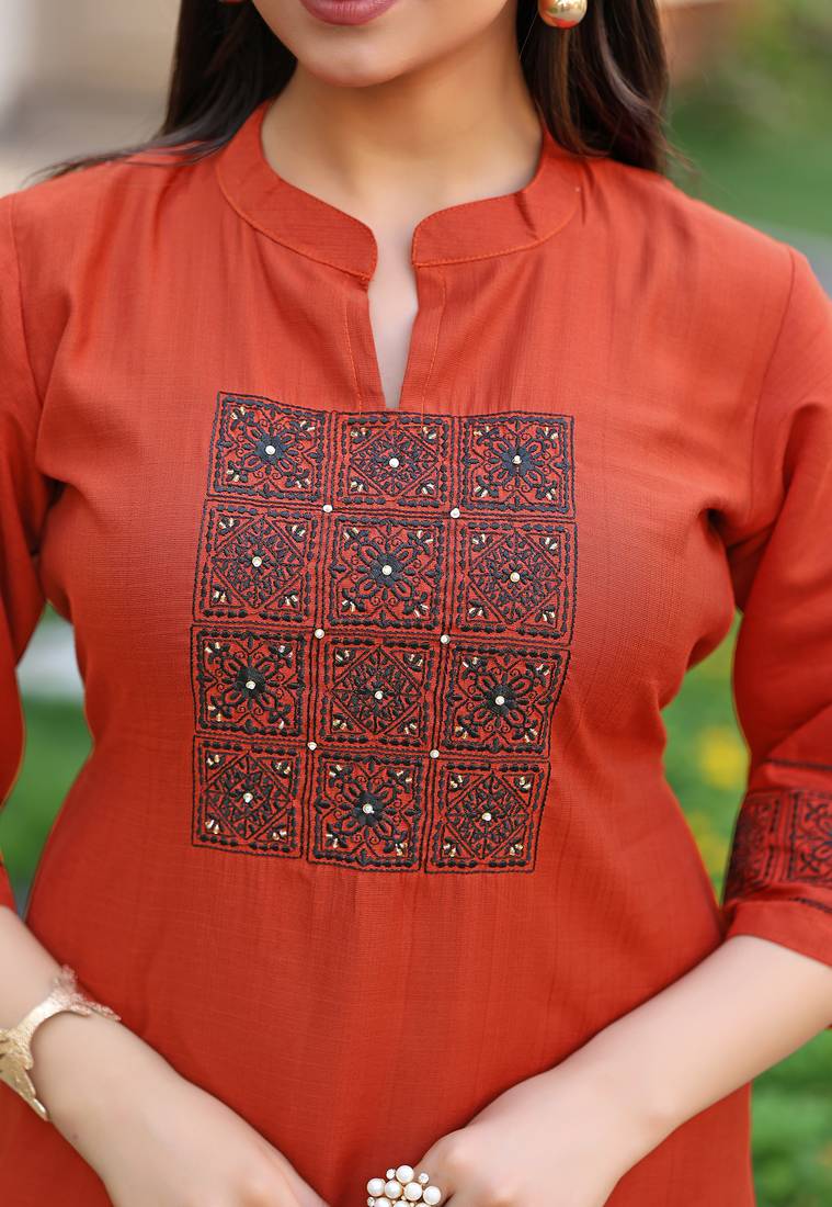 • | Bottom | : | Color- Orange / Fabric- Viscose Rayon |