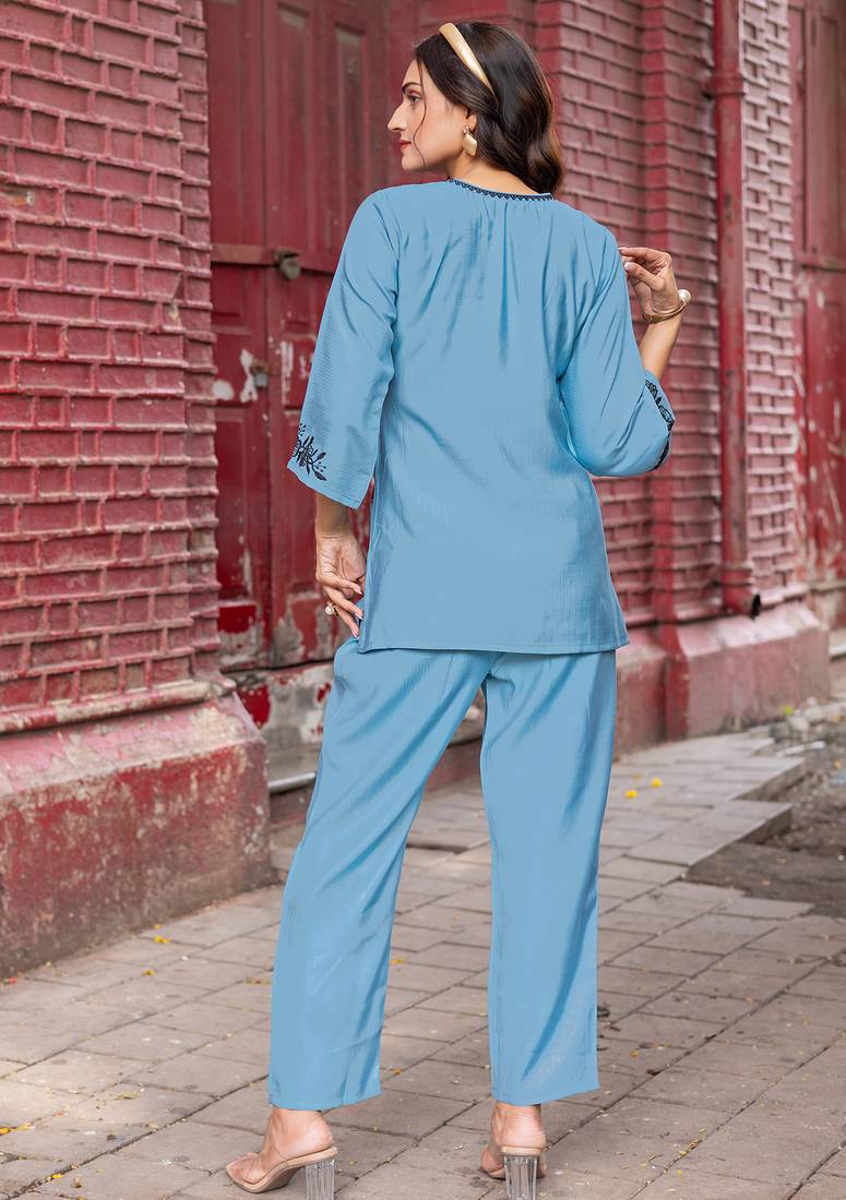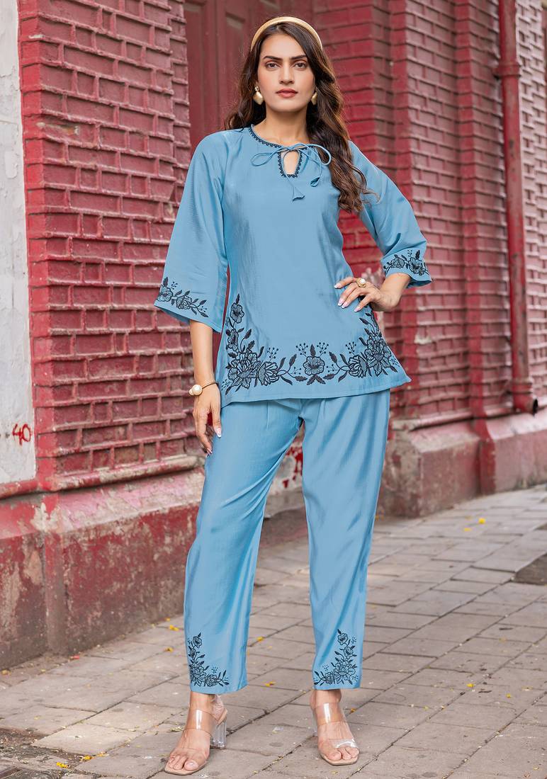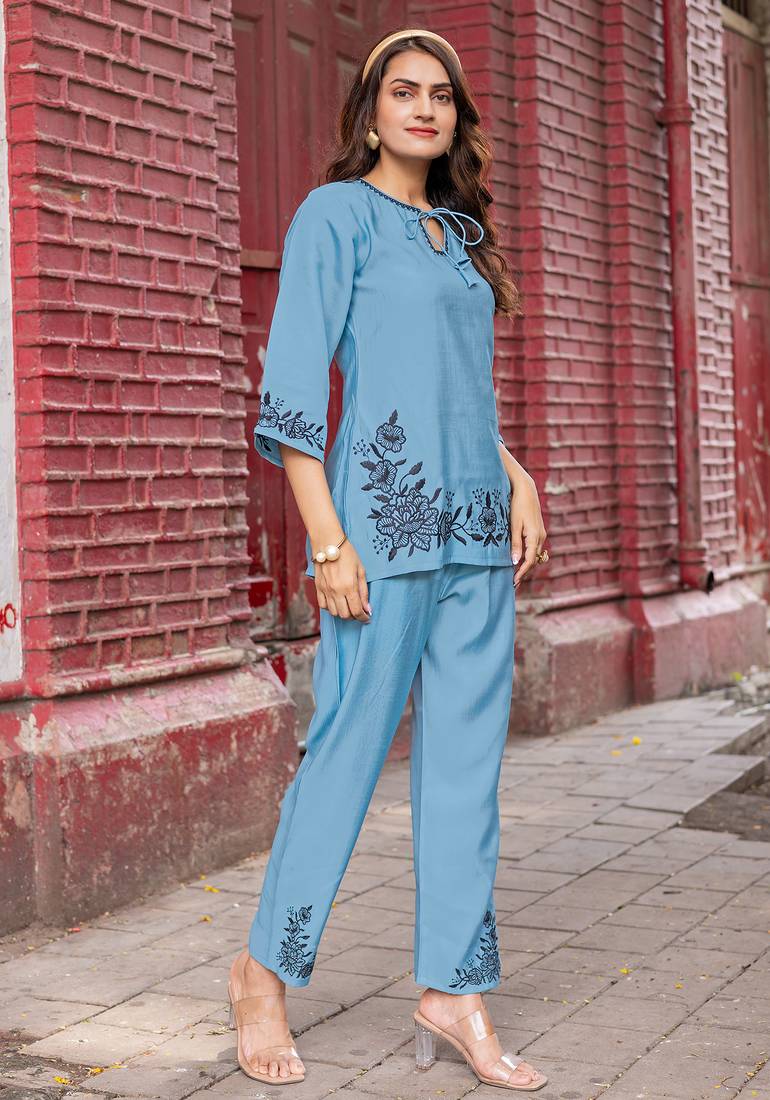 • | Bottom | : | Color- Sky Blue / Fabric- Viscose Rayon |