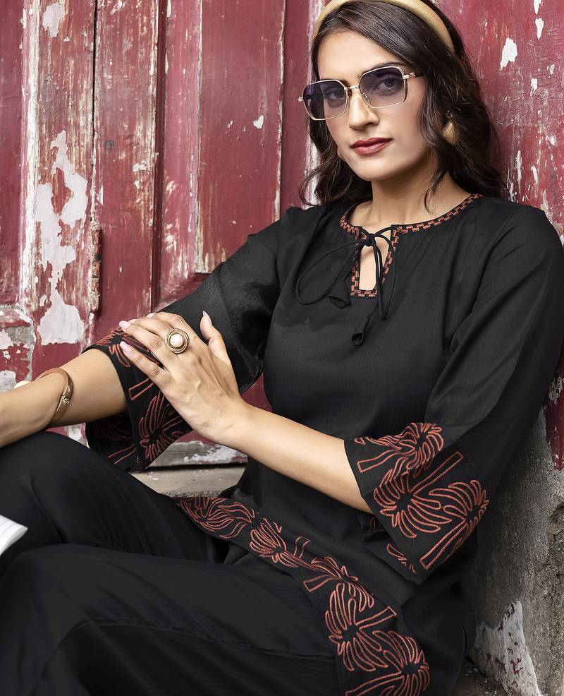 Product Name | Women Viscos Rayon Threadwork Kurta With Trouser | |