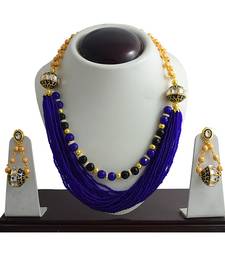 | Product Description | A Sophisticated Piece Featuring Lustrous Blue  Toned Multi Chains Which Cross And Interlink Beautifully With Delicate Handwork Of Meenakari And Kundan Stones, Creating A Classic Knot Detail. This Style Sits At An Elegant And Flattering Point Ideal For Dressing A Traditional Outfit. The Mala Is Attached With Beautiful Multi Color Beads Also Ecompasses Kundan Balls Ingrained With Meenakaari Which Inceases Its Charm.Necklace Closes With A Knot Ended With A Lumbaa.The Finish Is Impeccable. This Overall Craft Design Will Wow You And Enhance Your Looks. |