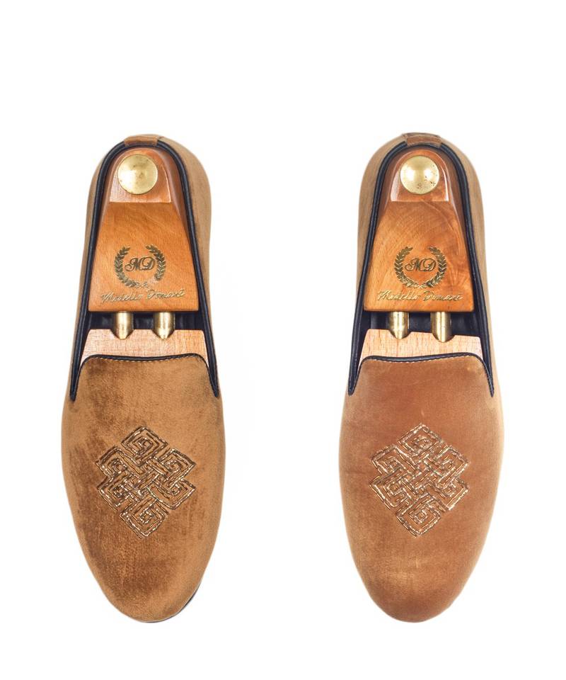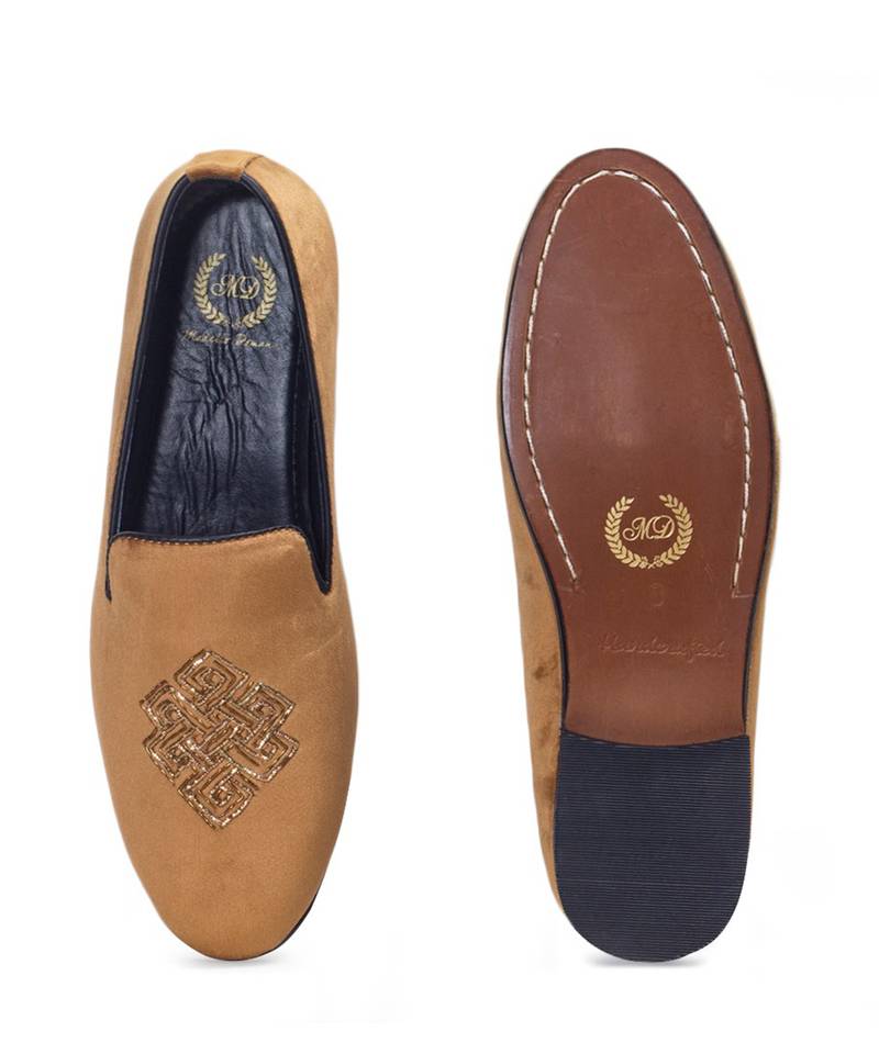 | Product Description | Featuring Tan Celtic Slipons. Handcrafted Zardozi Embroidered Velvet Slipons With Leather Padded Lining For Comfort And Signature Hardsheet Sole. |