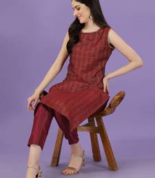 Women's jacquard printed silk blend kurti and pant set (mak2jcq)