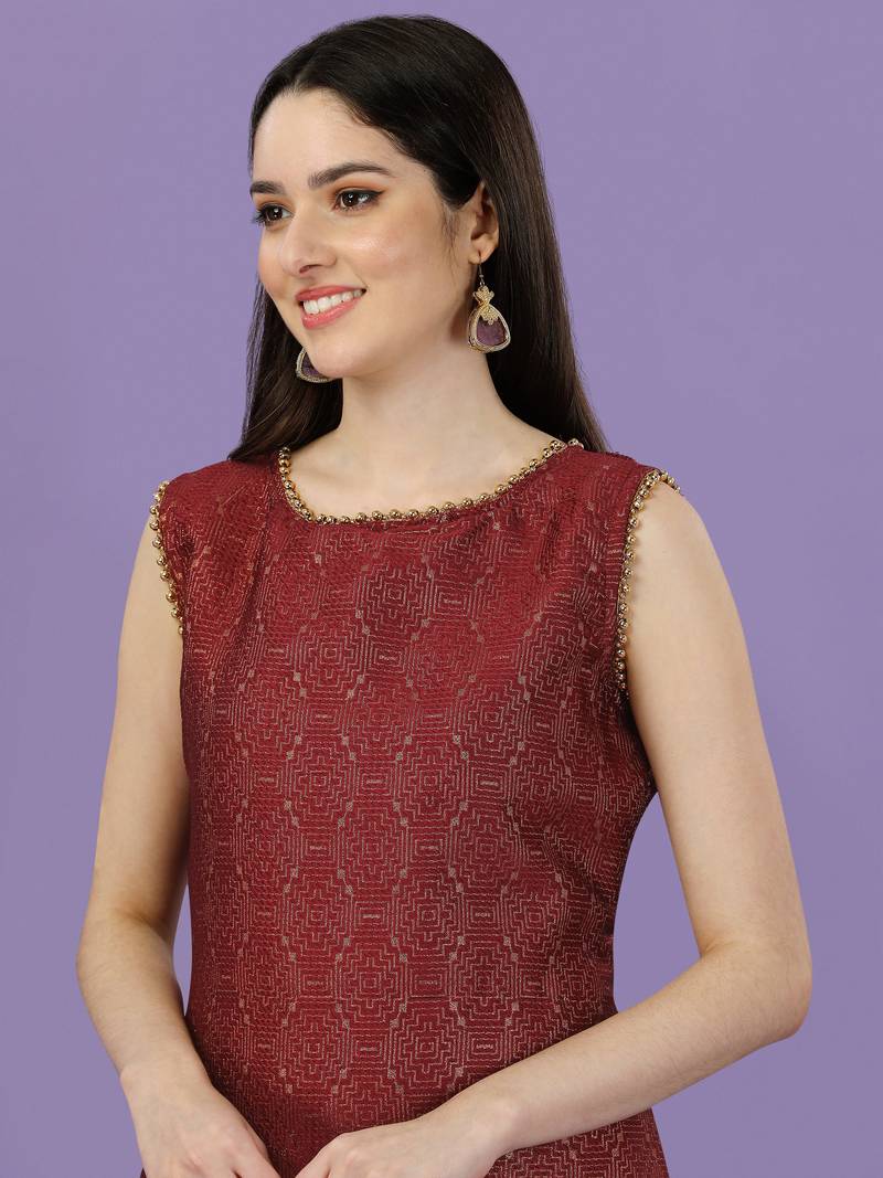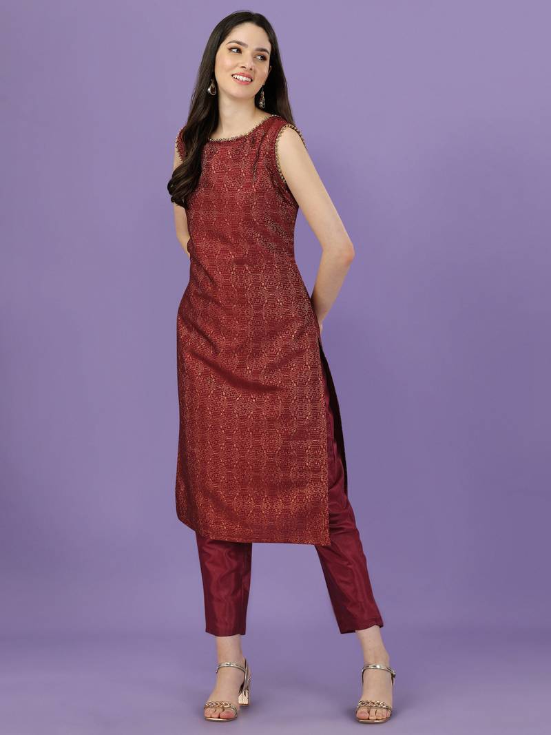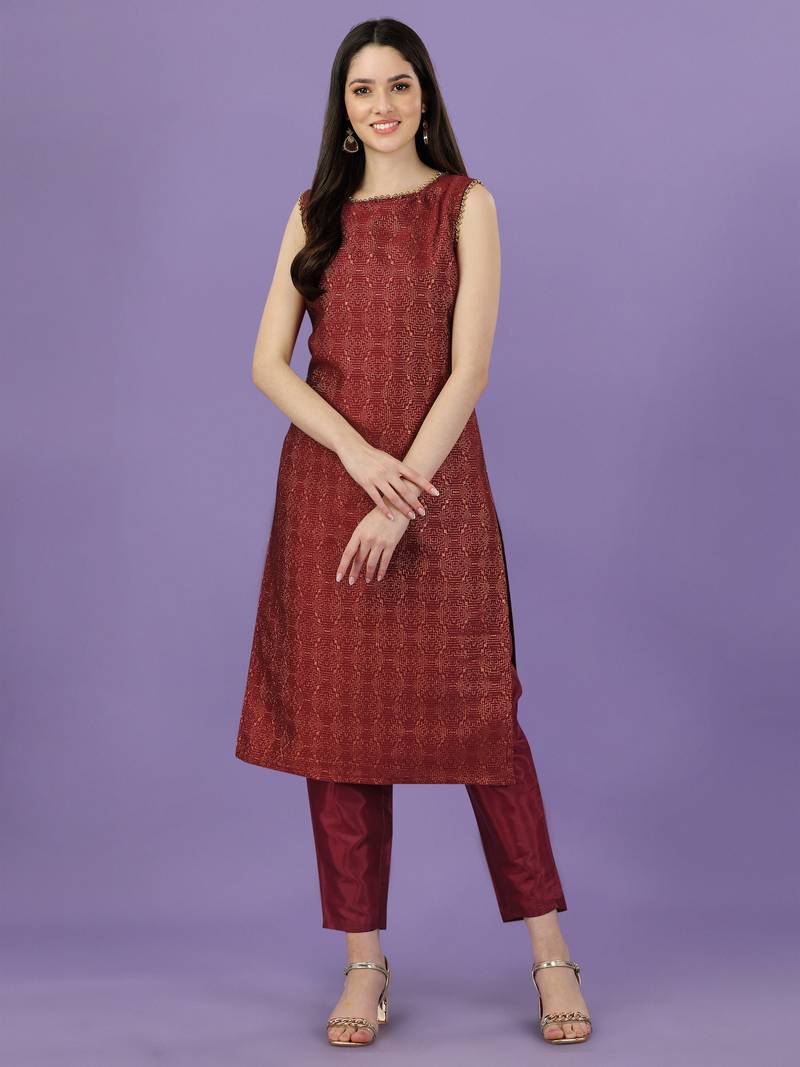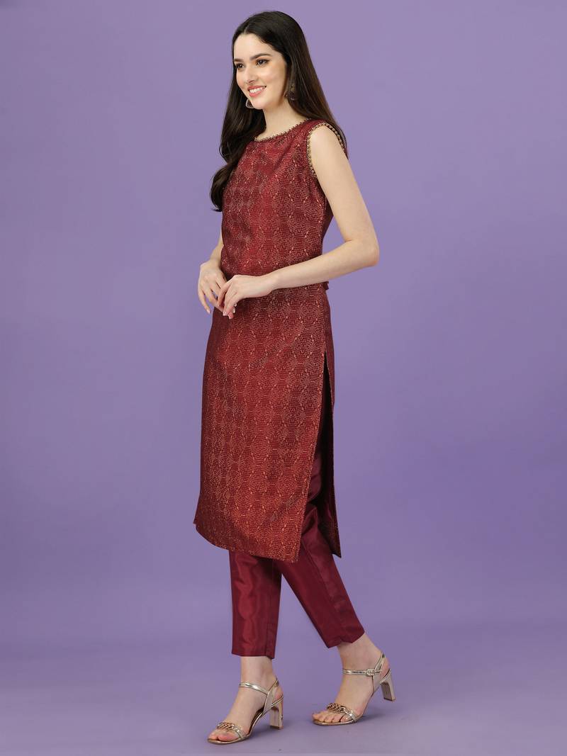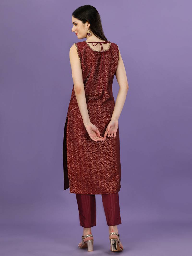 Women's Jacquard Printed Silk Blend Kurti And Pant Set (Mak2 Jcq)