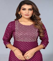 | Product Description | Mohvogue Women's Embroidered Rayon With Foil Printed Purple Coloured Three Quarter Roll Up Sleeve Straight Fit Kurta With Side Slits |