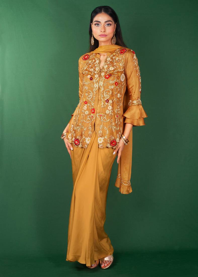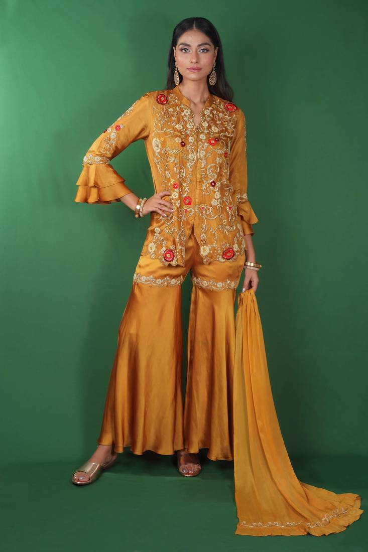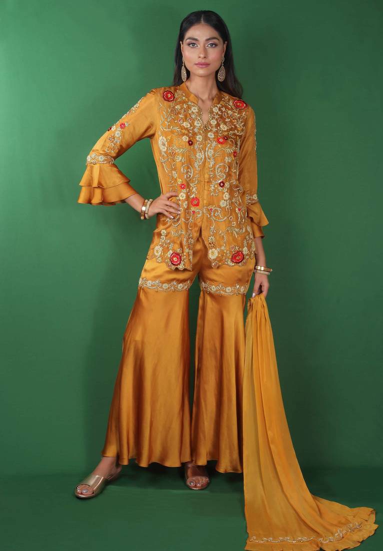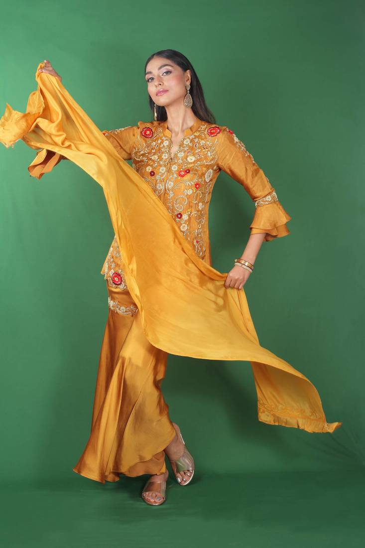 | Product Name | Yellow Embroidered Satin Kurta Set | |