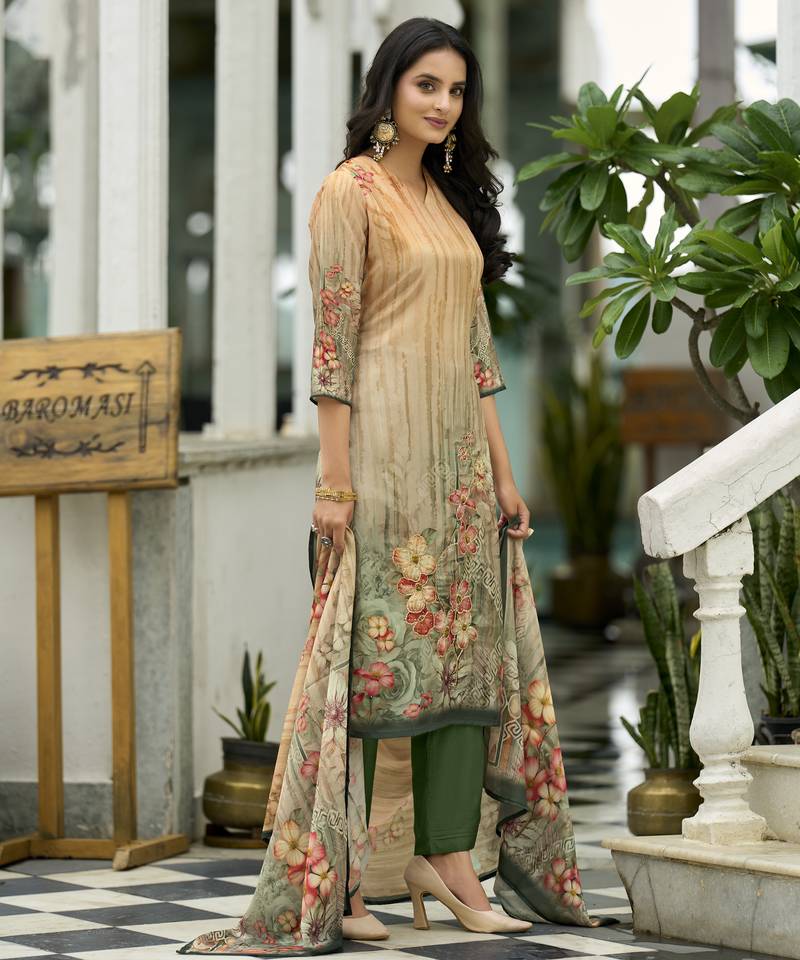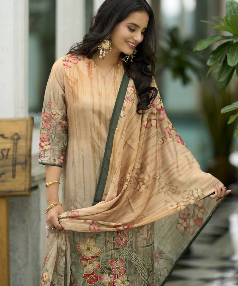 Product Name | Beige Ho Organza Floral Printed Straight Kurta With Pant & Printed Dupatta | |