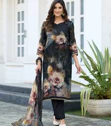 Black organza floral printed straight kurta with comfort fitting pant & printed dupatta stitched