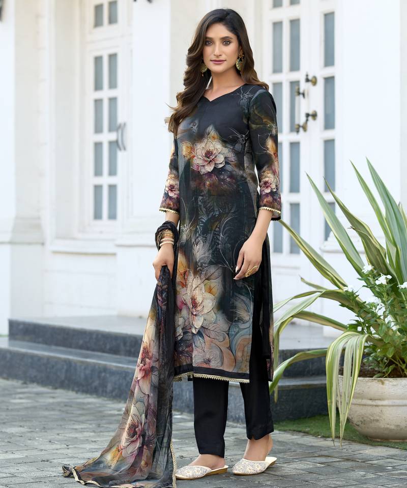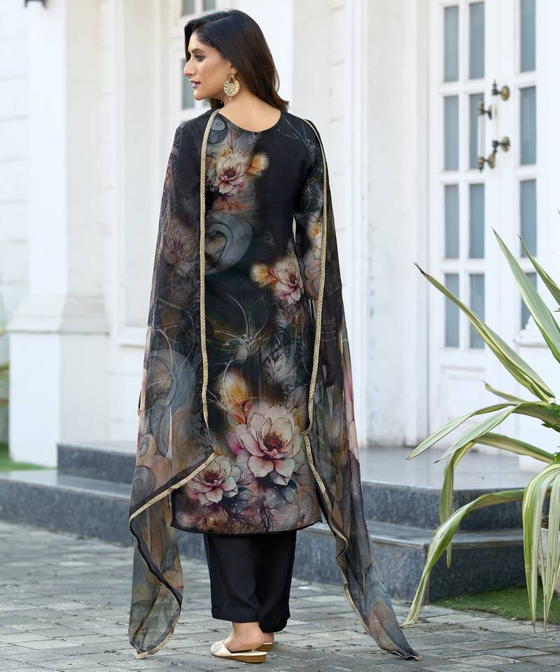 Product Name | Black Organza Floral Printed Straight Kurta With Comfort Fitting Pant & Printed Dupatta | |