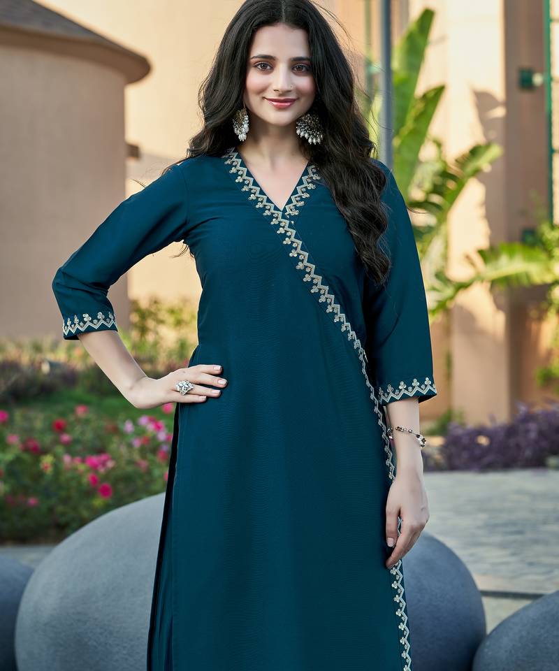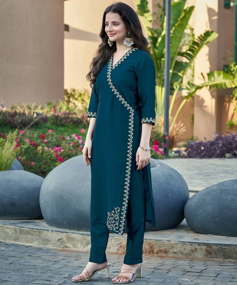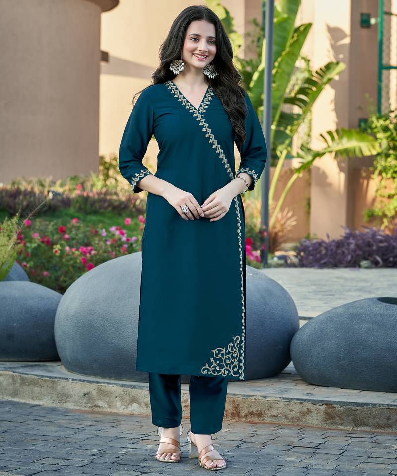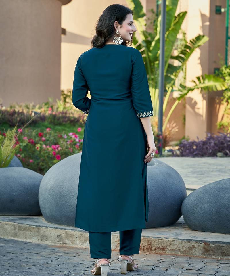 | Product Name | Dark Blue Viscose Crystal Floral Embroiery Embroidered Straight Kurta With Pant | |