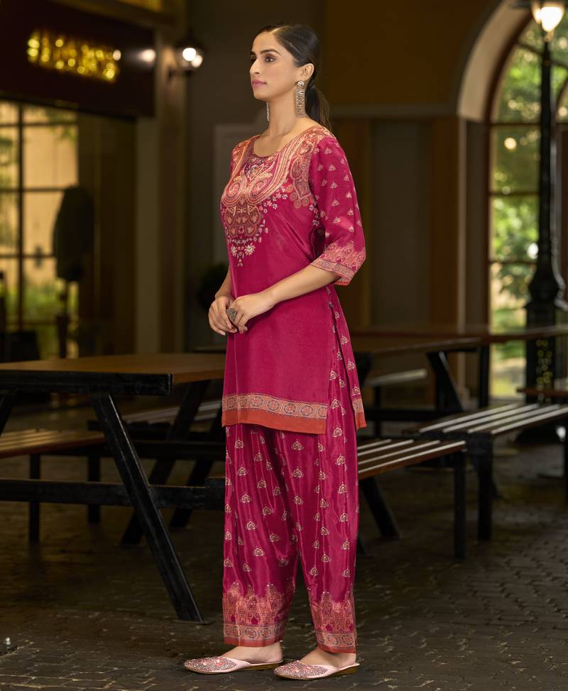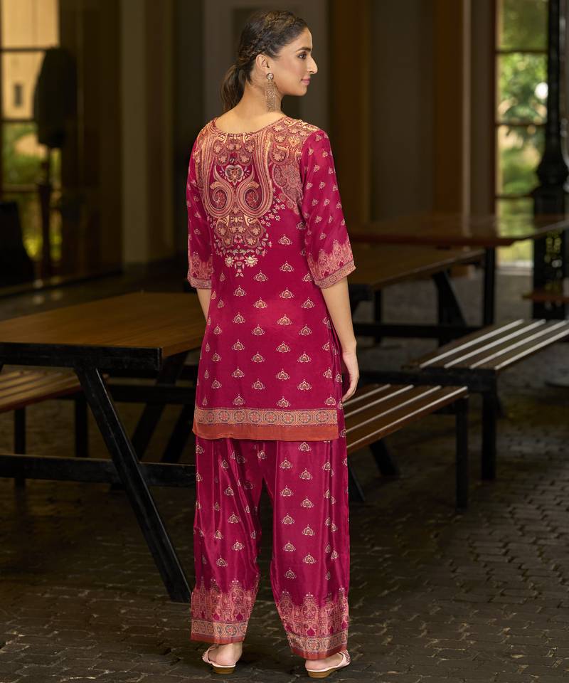 Product Name | Fuchsia Pink Pure Crepe Abstract Print Festive & Party Co Ord Set | |