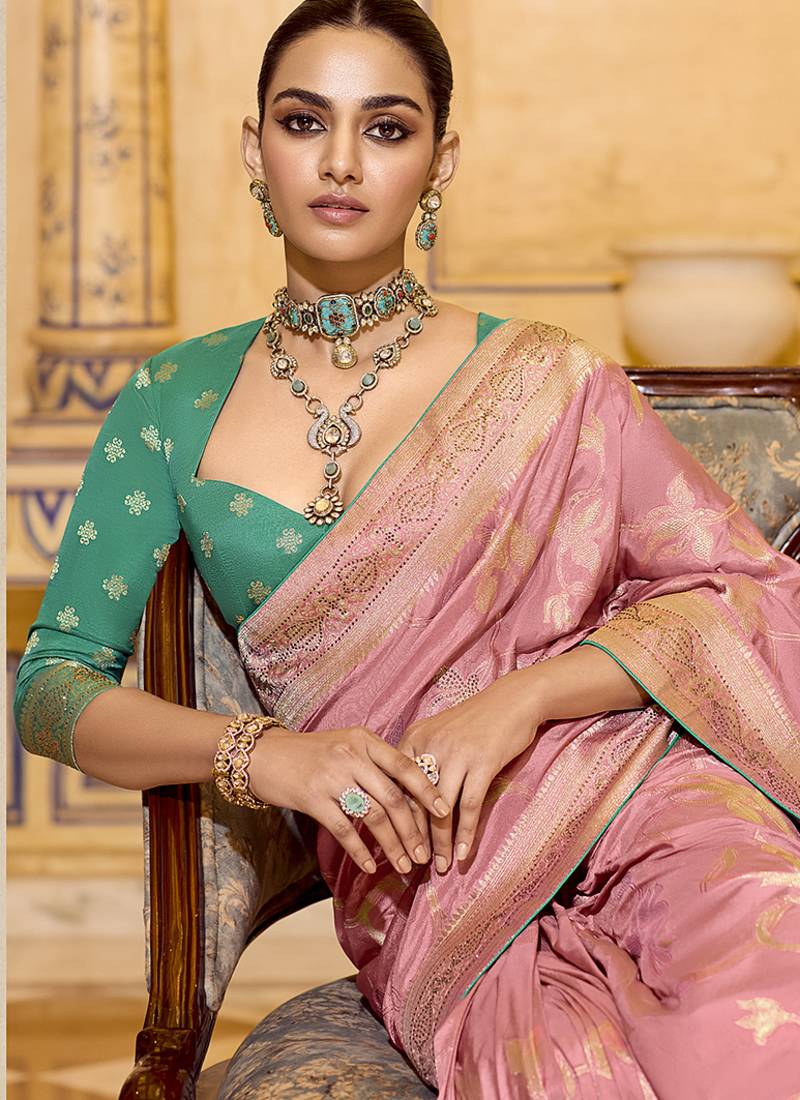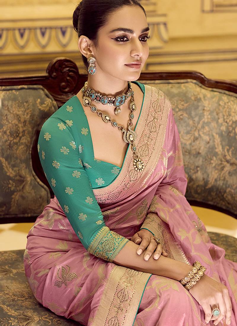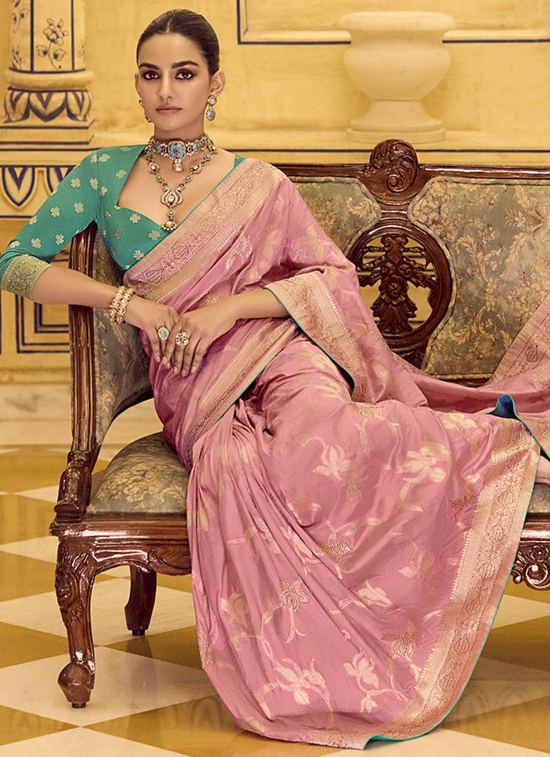 Baby pink faux crepe art silk with beautiful zari weaving work classic saree