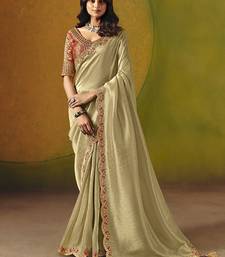Beige embroidered silk blend saree