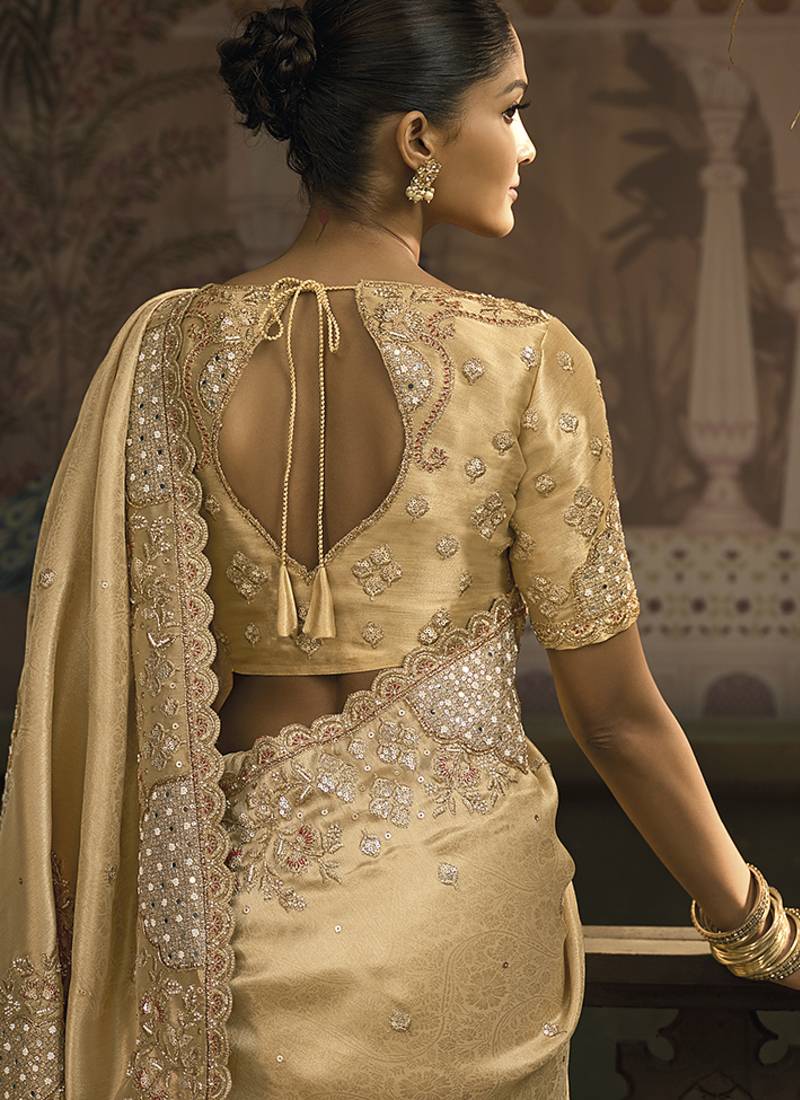| Product Name | Beige Silk Blend Wedding Saree With Cut Dana, Embroidered, Moti And Zari Work | |