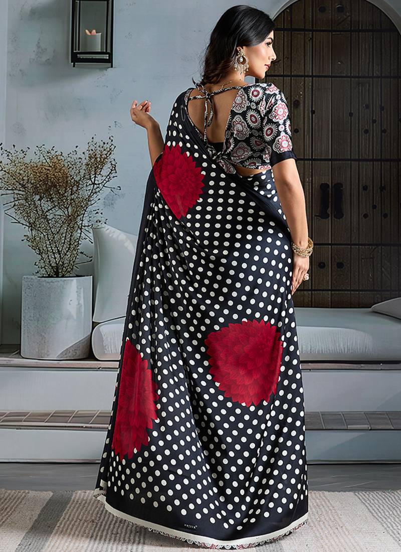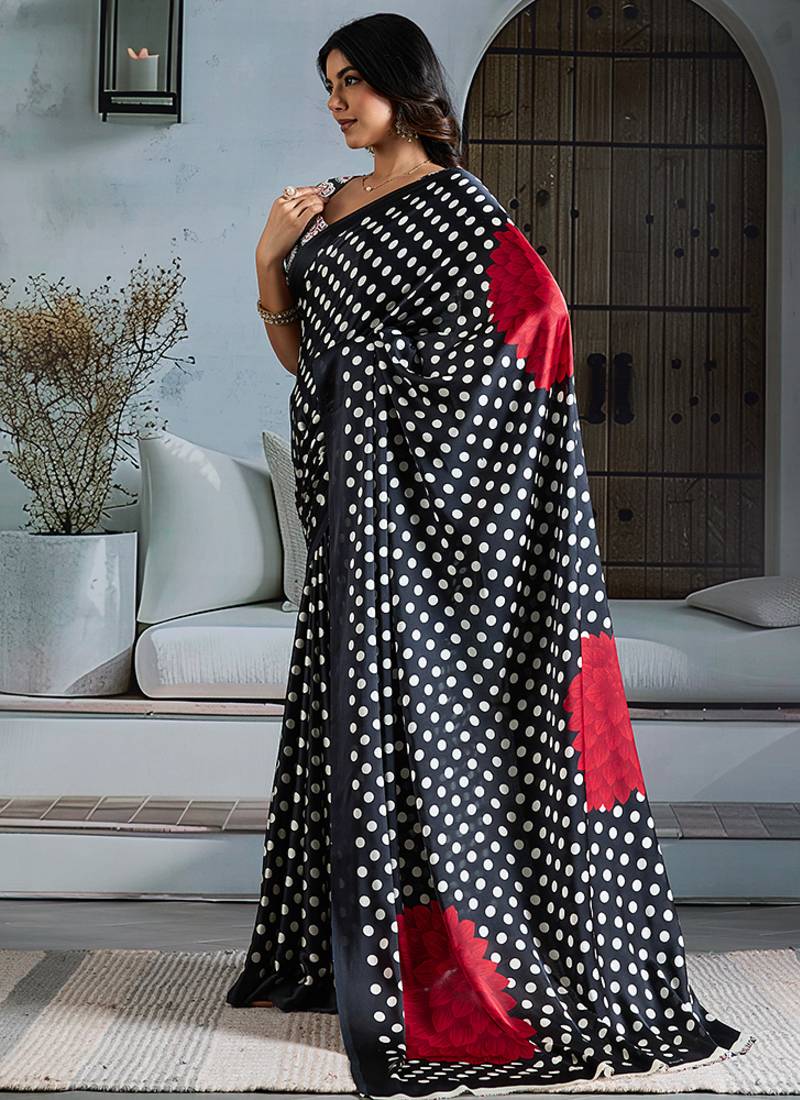 | Product Description | Real Magnificence Comes Out Of Your Dressing Design With This Black Satin Classic Saree. The Ethnic Print Work For The Apparel Adds A Sign Of Magnificence Statement With A Look. Comes With Matching Blouse. (Slight Variation In Color, Fabric & Work Is Possible. Model Images Are Only Representative.) |