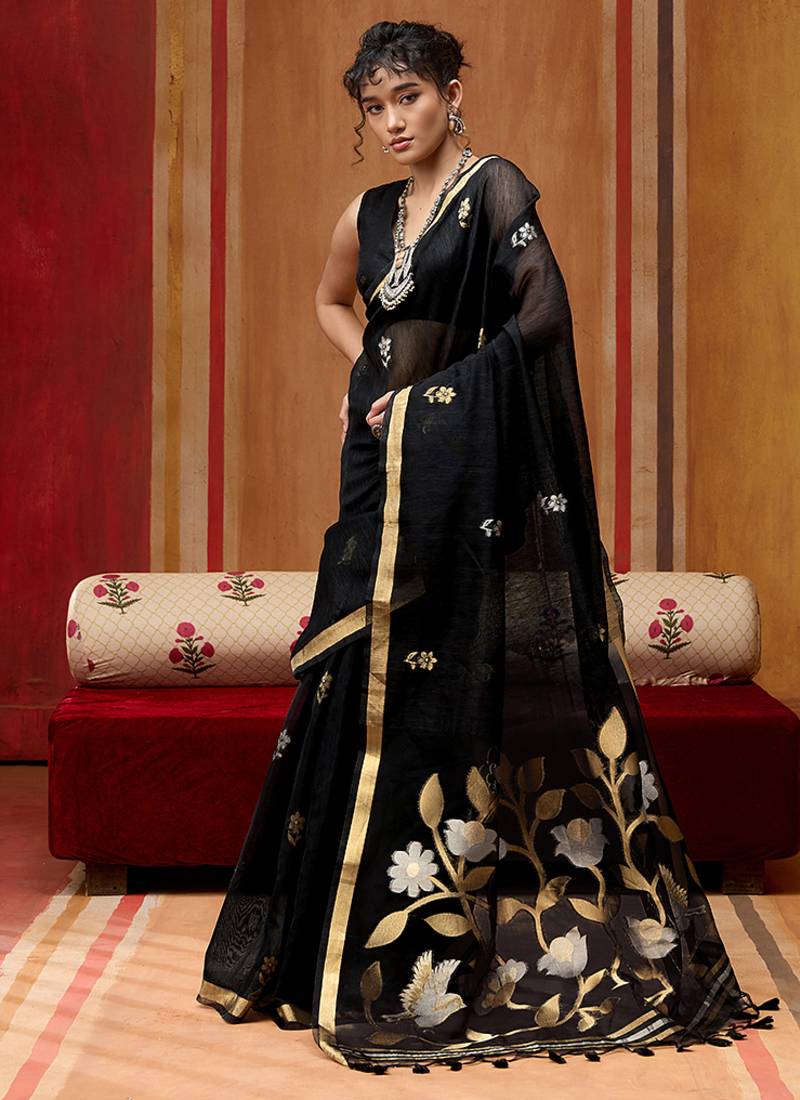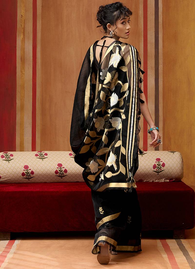 Black art silk woven work saree