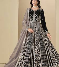 Black velvet salwar kameez with embroidered work semi stitched
