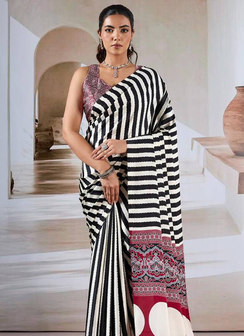 | Product Name | Black & White Printed Modal Satin Saree | |