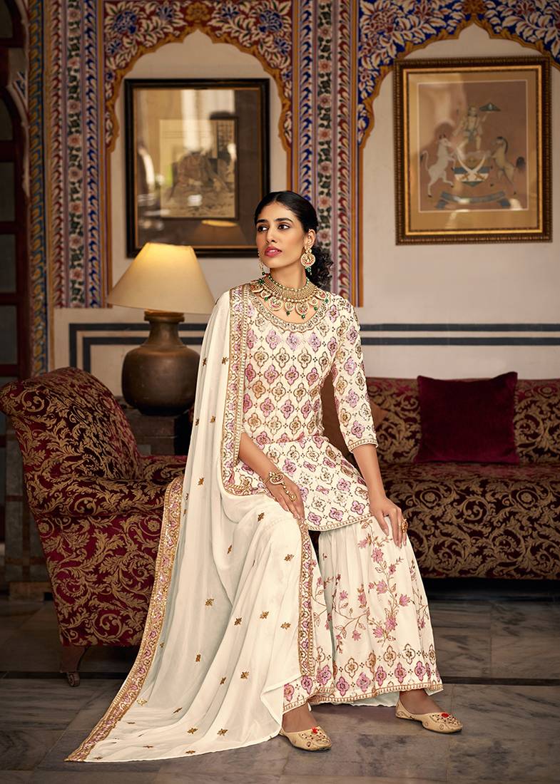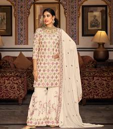 | Product Name | Cream Color Faux Georgette Embroidered Semi Stitched Sharara Suit | |