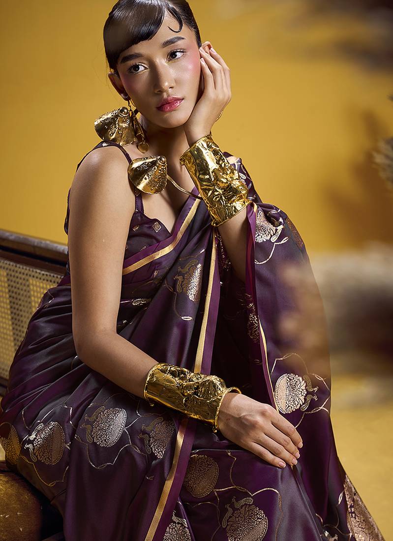 | Product Name | Dark Purple Handloom Satin Saree With Weaving Work | |