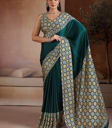 Dark teal printed satin saree