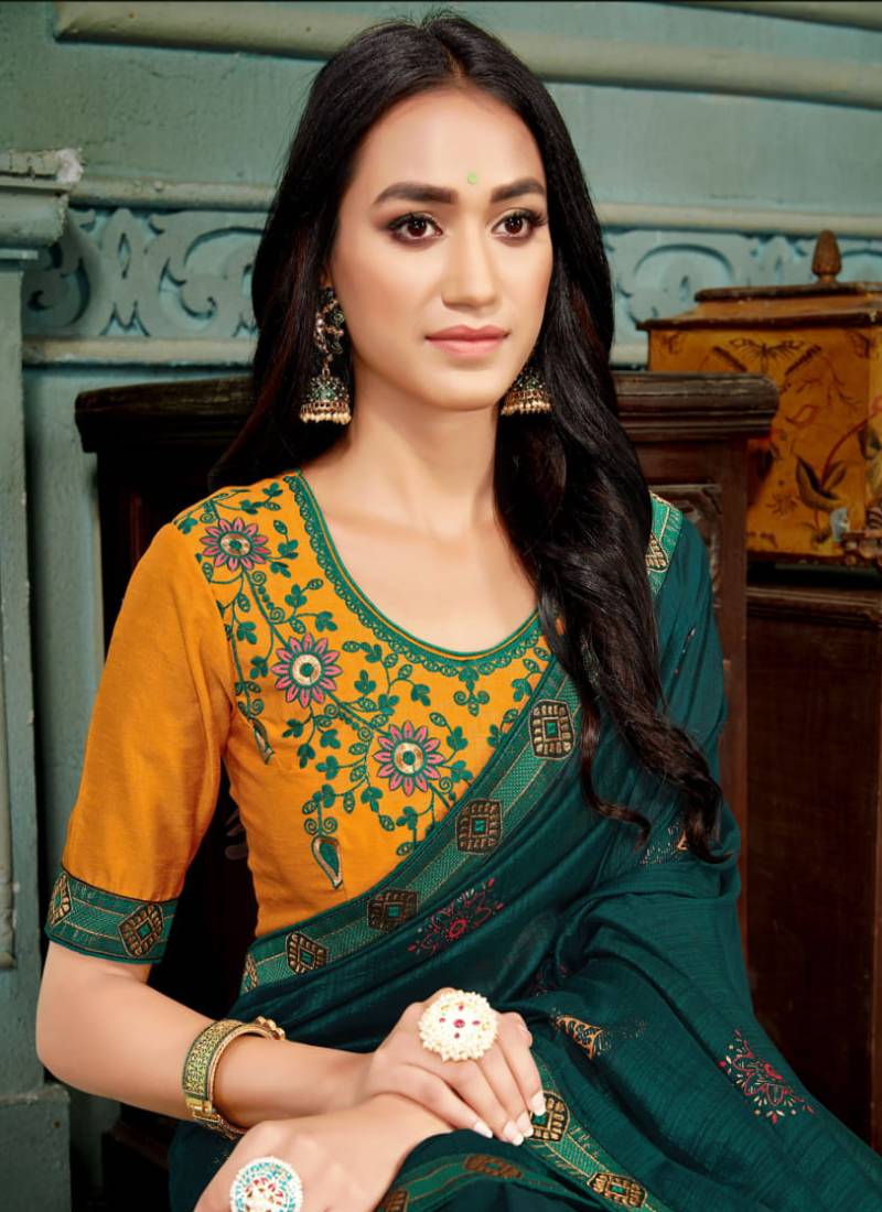 | Product Description | Monjolika Fashion Presents Mesmerize Everyone Around By Cladding Into This Dark Teal Color Designer Saree. This Party Wear Vichitra Silk Saree Is Decorated With Foil Print Work. The Saree Comes Along With Matching Unstitched Mustard Color Banglori Silk Blouse Piece That Can Be Custom Tailored Upto 42 Inches. |