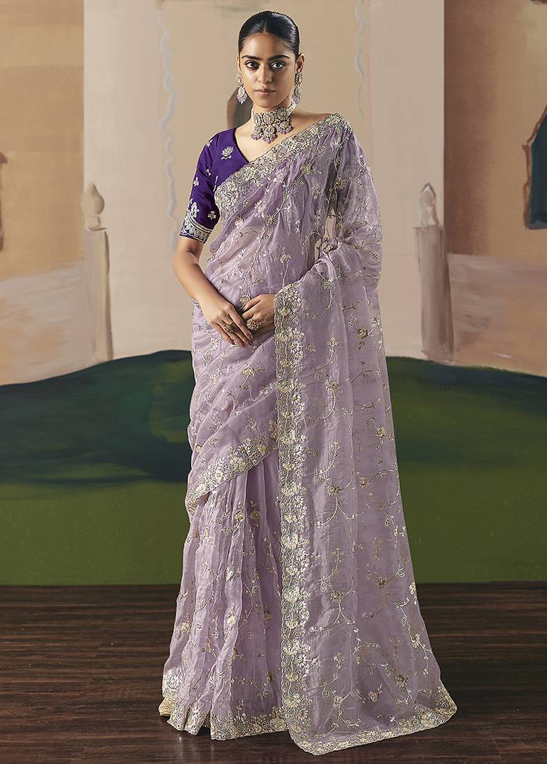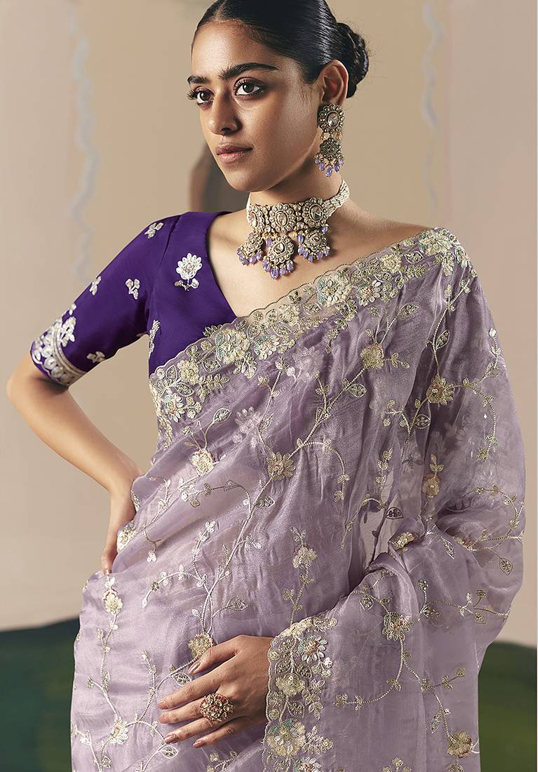 Product Name | Embroidered Lilac Fancy Fabric Party Designer Saree | |