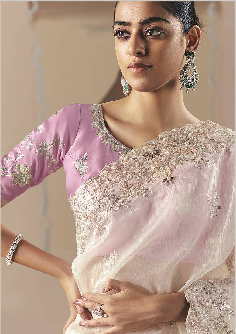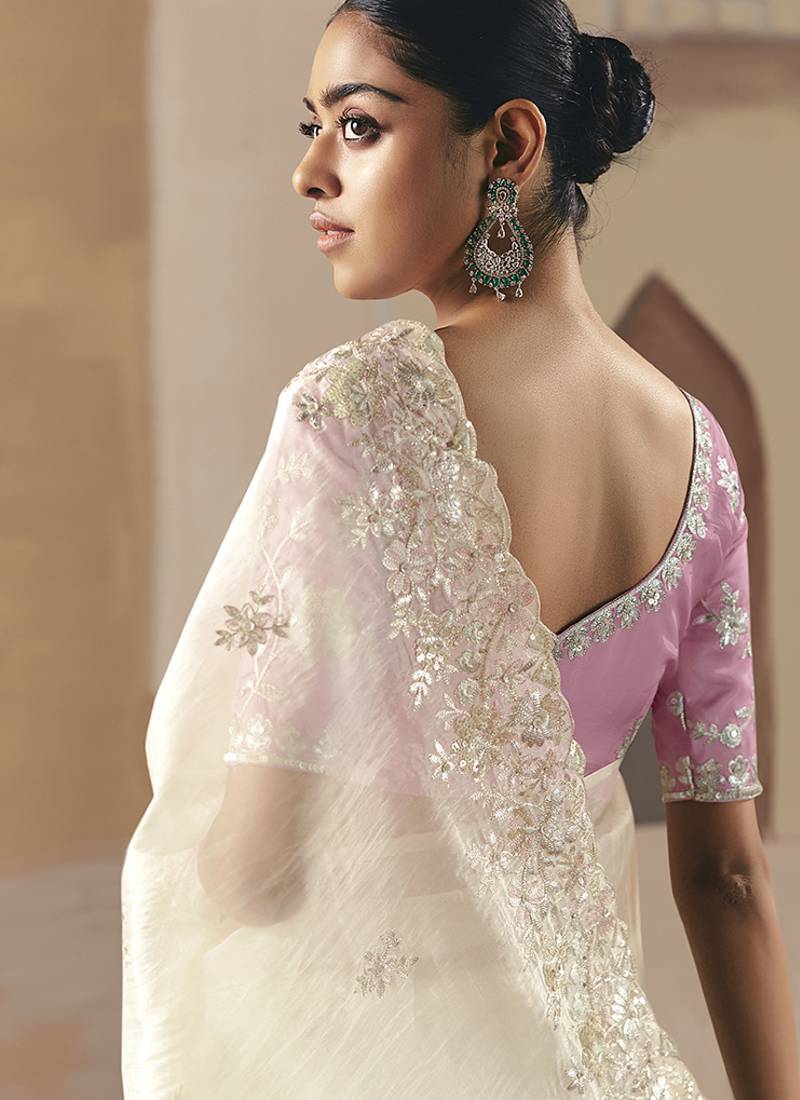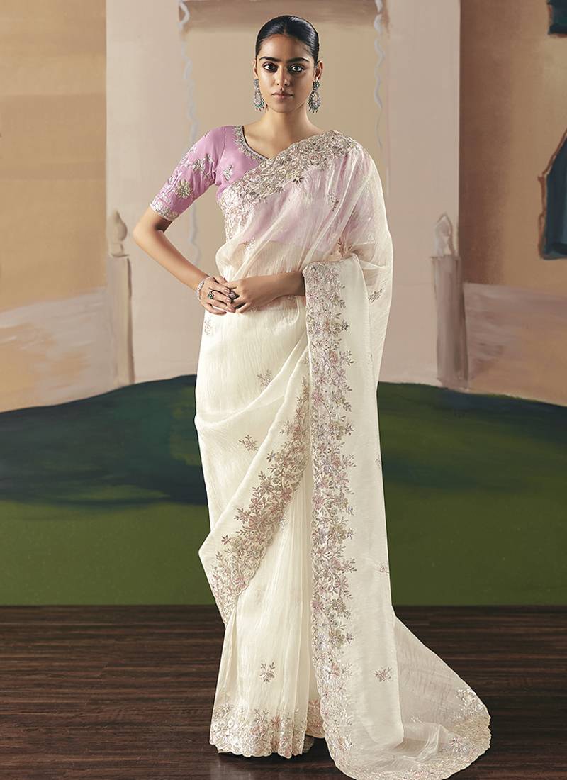Product Name | Embroidered Off White Fancy Fabric Party Designer Saree | |