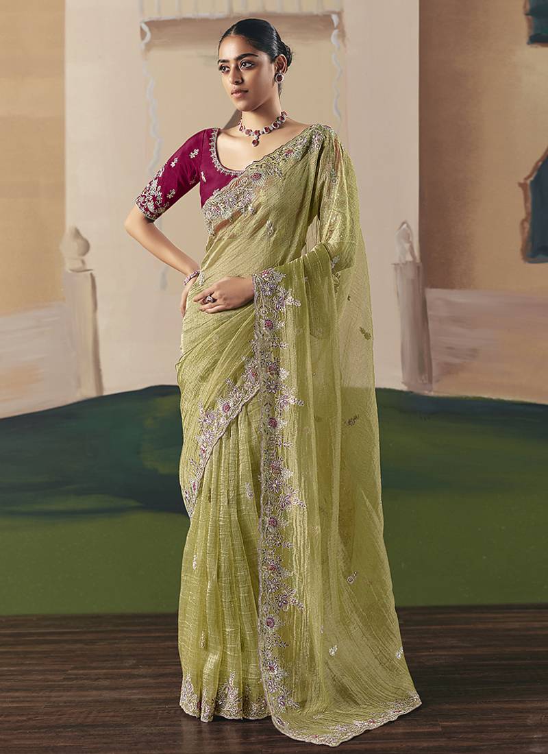 Product Description | You Are Confident To Make A Powerful Fashion Statement With This Pear Green Fancy Fabric Designer Saree. The Interesting Cutwork, Embroidered, Sequins And Zari Work All Through The Attire Is Awe Inspiring. Comes With Unstiched Blouse. (Slight Variation In Color, Fabric & Work Is Possible. Model Images Are Only Representative.) |