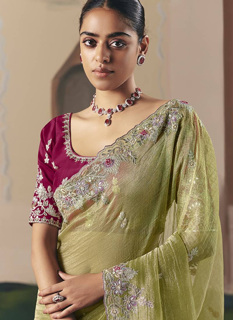 • | Saree | : | Color- Pear / Fabric- Fancy Fabric |