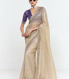 Fancy fabric embroidered beige saree