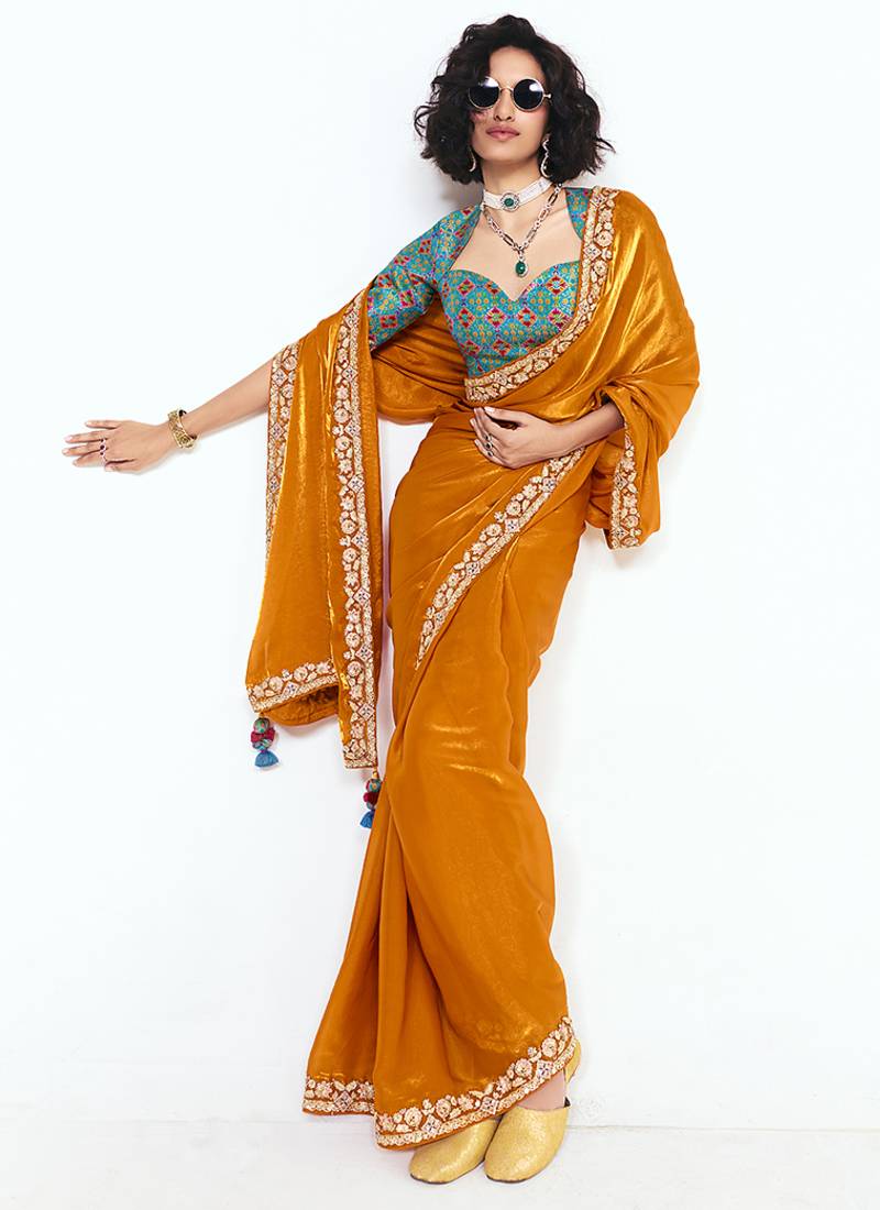 | Product Description | Designed With Simplicity With A Touch Of Soberness In Its Work Makes A Masterpiece. This Orange Fancy Fabric Classic Saree. Beautified With Border, Embroidered, Sequins And Thread Work Work All Synchronized Well Through The Pattern And Style Of The Attire. Comes With Unstiched Blouse. (Slight Variation In Color, Fabric & Work Is Possible. Model Images Are Only Representative.) |