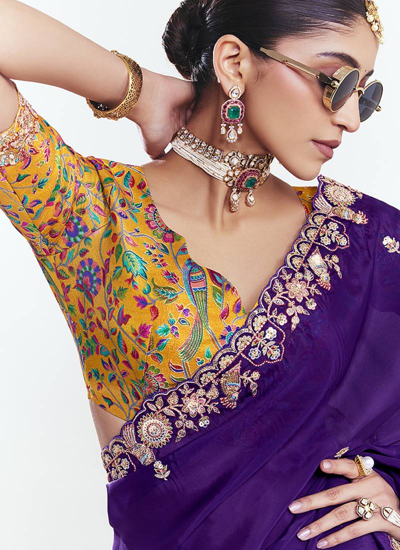 | Product Description | Designed With Simplicity With A Touch Of Soberness In Its Work Makes A Masterpiece. This Purple Fancy Fabric Classic Saree. Beautified With Border, Embroidered, Sequins And Thread Work Work All Synchronized Well Through The Pattern And Style Of The Attire. Comes With Unstiched Blouse. (Slight Variation In Color, Fabric & Work Is Possible. Model Images Are Only Representative.) |