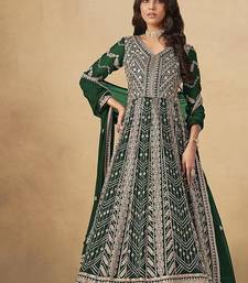 Faux georgette embroidered dark green engagement wear anarkali suit semi stitched
