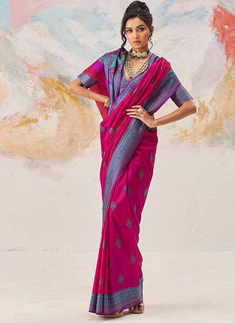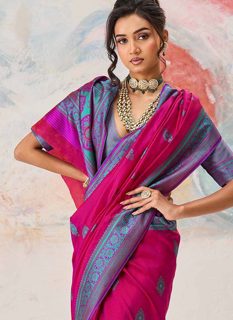 | • | Saree | : | Color- Rani Pink / Fabric- Faux Kanjivaram Silk |