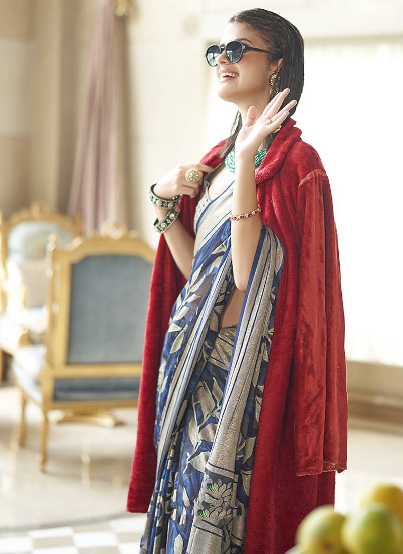 • | Saree | : | Color- Navy Blue / Fabric- Georgette |