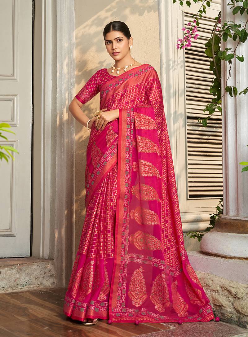 | Product Description | This Season Your Look Gets Better Definition With Just A Little Attention To Detail. Get The Simplicity And Grace With This Rani Pink Georgette Classic Saree. It Has Been Beautifully Designed With Print And Weaving Work. Comes With Matching Blouse. (Slight Variation In Color, Fabric & Work Is Possible. Model Images Are Only Representative.) |