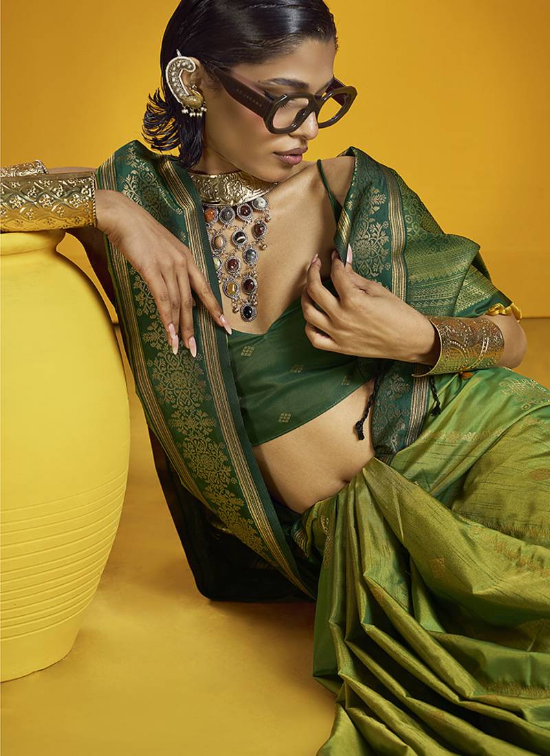 | Product Name | Green Handloom Silk Blend Saree With Weaving Work | |